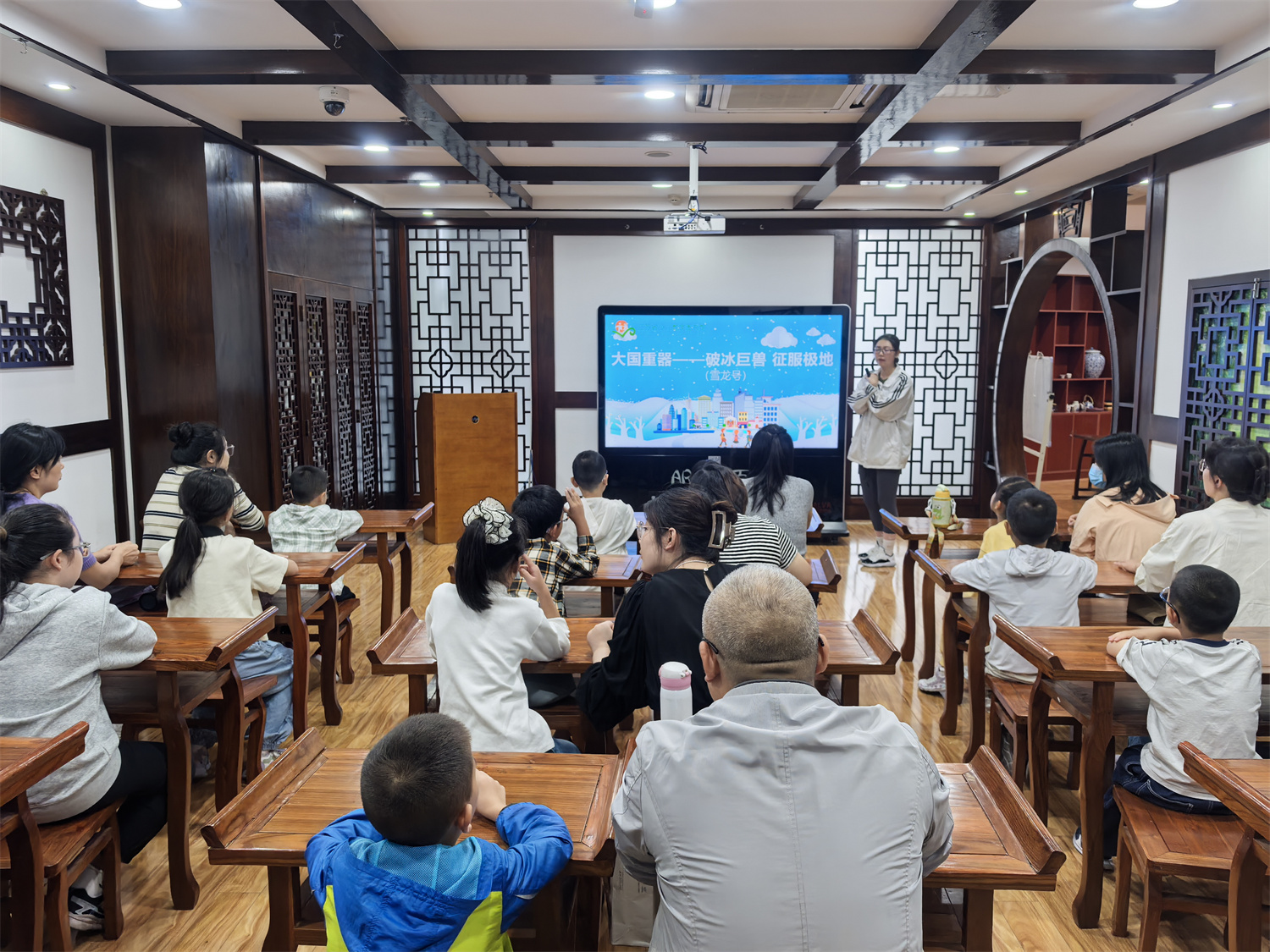 活动伊始,老师化身科普讲解员,她用生动易懂的语言,系统讲述了“雪龙”号与“雪龙2”号的发展历程——从早期科考探索的艰难起步,到新一代科考船在技术上的突破与创新,让小读者们清晰了解到我国极地科考事业的进步与成就。