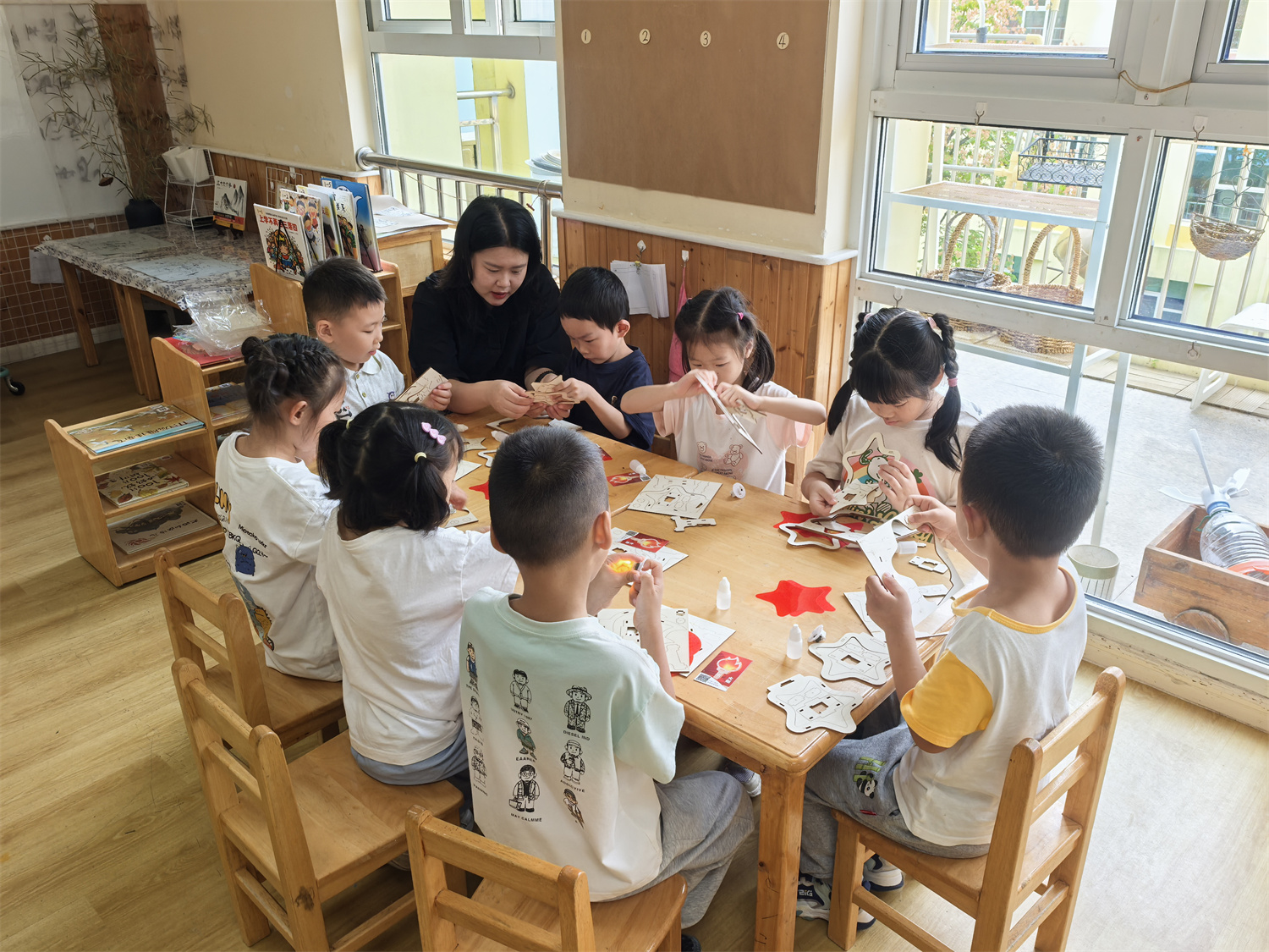 随后的“国庆DIY火炬”环节,孩子们迫不及待地动手操作,有的认真拼装火炬主体,有的小心翼翼粘贴亮片装饰,不一会儿“国庆火炬”就完成了。孩子们举起自己的作品,并上台送上了对祖国母亲的美好祝福,现场充满了欢声笑语。